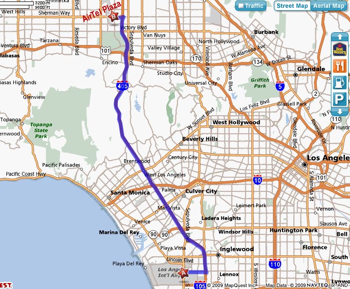 You will want to start planning your trip early, not just because it's exciting, but because this is one of those instances where you may well lose out if you leave things to the last minute. As mentioned before, do make sure your event tickets are assured before booking travel. Here are some important things to consider: 2) Will you fly? Bus? Train? Drive? All options are open for getting to the Los Angeles area. 3) If you are going to fly, start watching for good air fares as soon as you have your tickets to the events. Anything below $300 round trip is an absolute winner if you are more than two states away from California. You should have purchased your airline ticket more than 2 weeks prior to the events for the best prices. Most airlines, plus services such as hotwire.com, travelocity.com, expedia.com and priceline.com offer programs were you can be informed if a fare drops below a particular price. 3.1)There are two airports nearby: LAX (LA International) and BUR (Burbank - Bob Hope). Burbank is considerably closer to Van Nuys and not quite as mired in traffic, but also has fewer flights in. It's very "user friendly." 3.2) Once you have landed, you, of course, need to get to the Airtel Plaza where the events will be held 3.2.a)Taxis are available at the airports. The cost of a taxi from Bob Hope Airport in Burbank to the Airtel Plaza Hotel is around $35-40 one way. Several car rental options are available at both airports. The car rental facilities also usually have little slips with directions on them for how to get to major highways. Use the maps below and a mapping system like yahoo maps to figure out where you need to be. 3.2.b)There is transportation called "Super Shuttle" that will take you to almost any hotel in the area provided you have a reservation. You can make a reservation to and from your hotel by going to www.supershuttle.com or calling 800/258-3826. It costs around $25 per trip. Don't let the driver convince you that you will have to pay more than the reservationist quotes you. If the driver gives you a different rate, phone the 800 number before you get on the shuttle and have THEM tell the driver your rate. Don't take any crap. When your plane lands and you have your luggage, go to OUT of the concourse to "Ground Transportation" and wait for the shuttle (you'll see a lot of different shuttles going by for rental car stations and such), which is basically a huge, blue van. There will likely be an attendant there and you can tell them to radio your shuttle. SuperShuttle (the blue van) services both Bob Hope and LAX. The cost to Airtel Plaza using this service is as follows: Bob Hope - one way - $17 for the first passenger + $9 for each additional in the group for the shared ride; $64 for a private van and $72 for an executive car. LAX - one way - $36 for the first passenger + $9 for each additional in the group for the shared ride, $91 for a private van and $87 for an executive car. 3.2.c)There is another shuttle service available called FlyAway. There is a FlyAway terminal only 2 blocks away from the Airtel Plaza Hotel. FlyAway bus service costs only $4 one way from LAX. The FlyAway bus service is a nonstop bus service from LAX to the FlyAway terminal and the Airtel Plaza Hotel van will pick you up at the FlyAway terminal. 3.3) If you rent a car when you get there, you will still go immediately outside the concourse to Ground Transportation and wait for the shuttle that will take you to the car rental company you have chosen. SHOP AROUND before you book and be sure to check places like hotwire.com, carrentals.com, travelocity.com, expedia.com and priceline.com for good rates. Plan on it taking about a half hour to get your car. BE PREPARED FOR TRAFFIC AS YOU HAVE NEVER IN YOUR LIFE ENCOUNTERED!! NOTE: I'm very serious. Whereas in other towns, you allow for a minute or so per mile, in LA, you double the miles to get the travel time. If it's between 3-6pm or 7-9am, you triple it at least. Also, remember that if you use a DEBIT card instead of a CREDIT card to pay for your car, it is typical for car rental dealerships to charge a deposit when you pick up the car. The standard deposit at an airport rental facility is $500. This does not release until the night after you return the car. 3.4) Note
