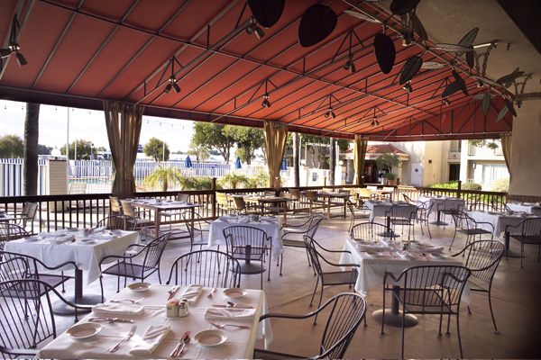 Dining (California Cuisine) is available in "Landings," the main dining room (above & below), or enjoy the views of the jets taking off and landing while dining on the outdoor patio: